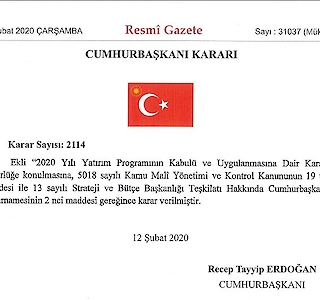 2020 Yılı Yatırım Programının Kabulü ve Uygulanmasına Dair Cumhurbaşkanı Kararı yayınlandı. (Karar Sayısı: 2114)